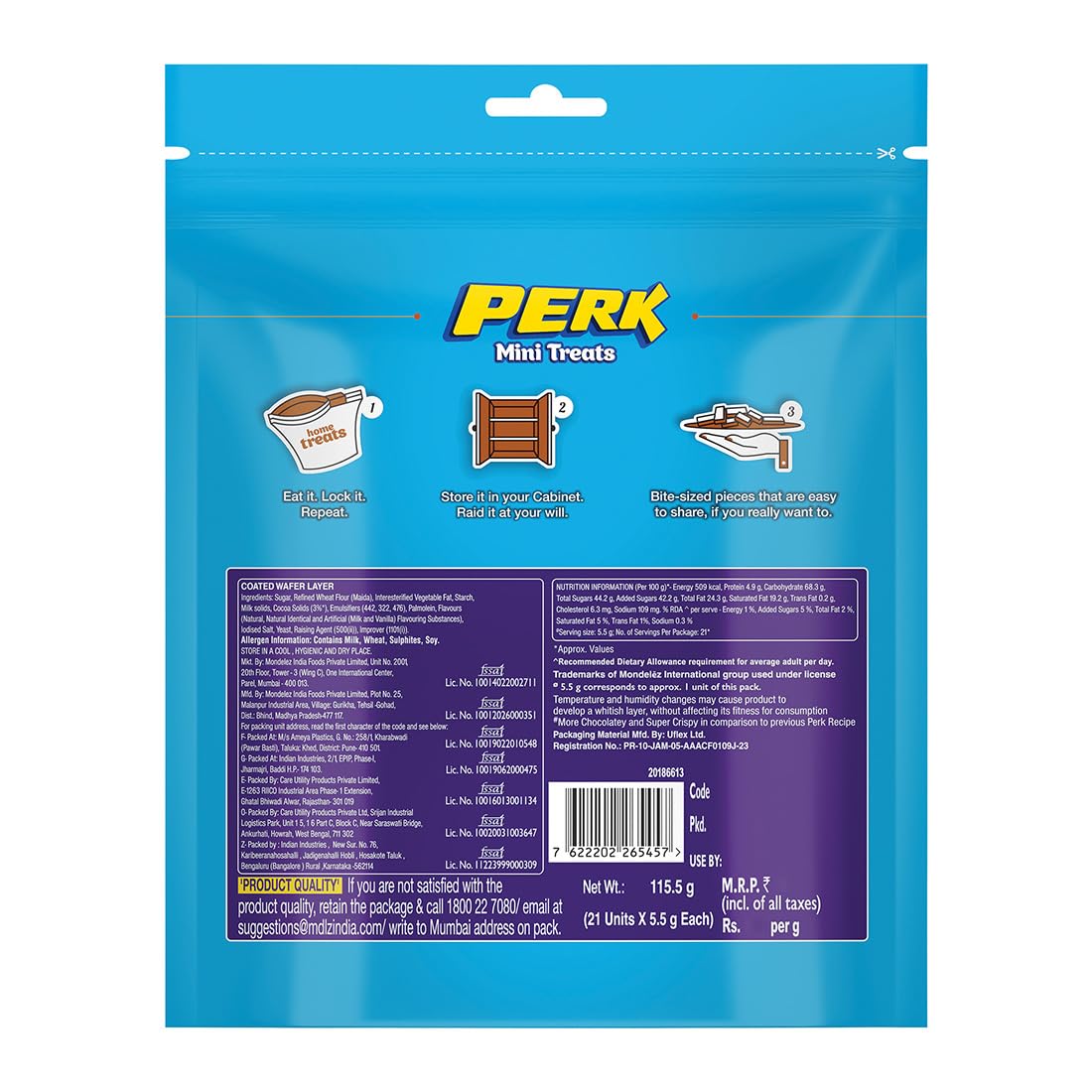 Cadbury Perk Mini Treats Chocolate Coated Wafers, 115.5 gram