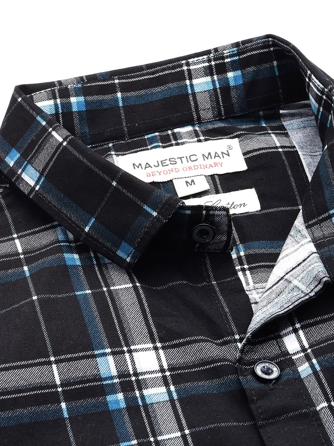 Majestic Man Slim Fit Short Sleeve Checked Pure Cotton Casual Shirt