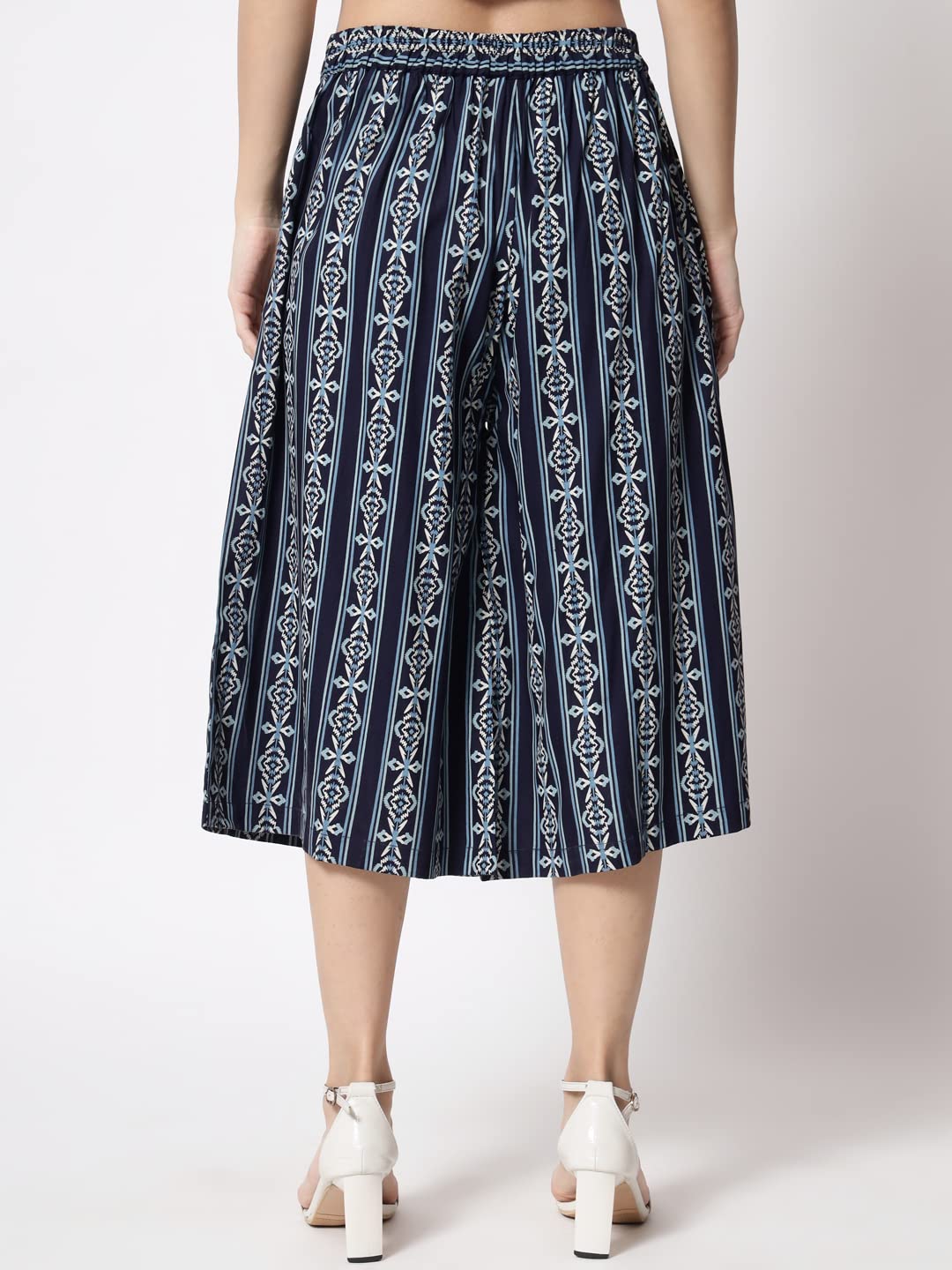 Rapsodia Women Rayon Navy & White Border Printed Culottes